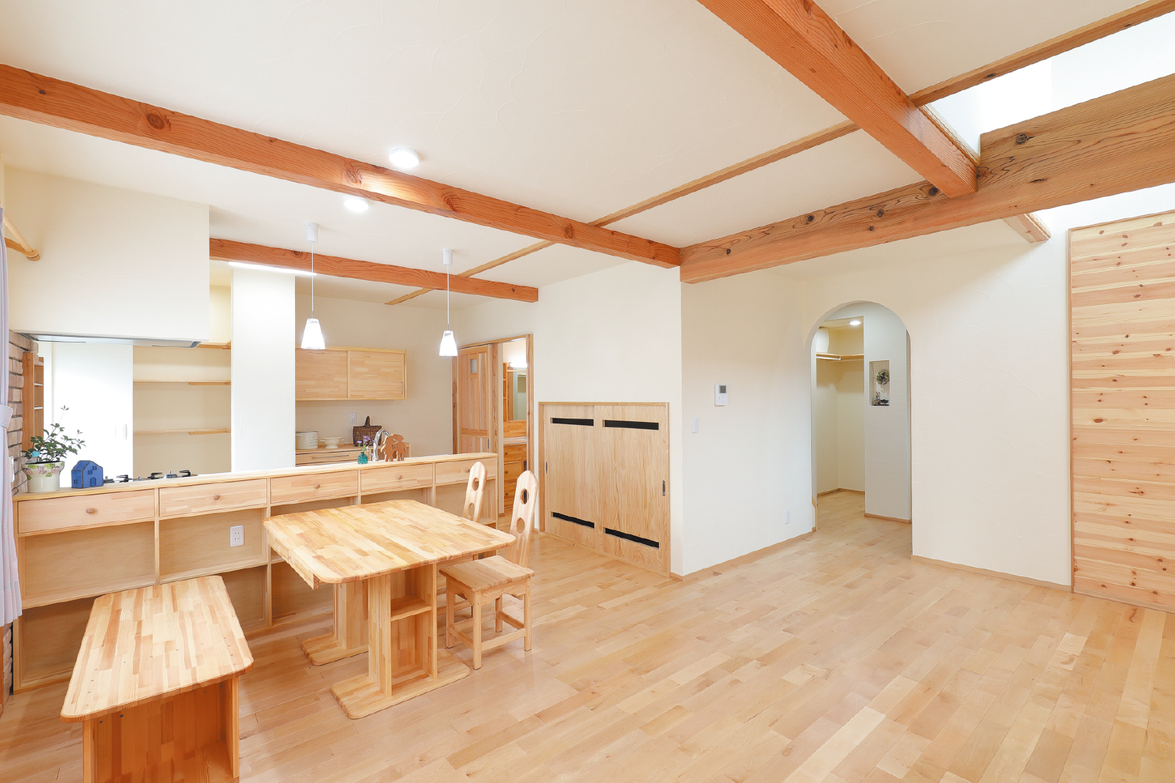 無垢材や塗り壁など自然素材をふんだんに使い、赤ちゃんにもやさしい安全な住環境に、国の補助金を最大限に活用したご家族も大満足のお住まいとなりました。