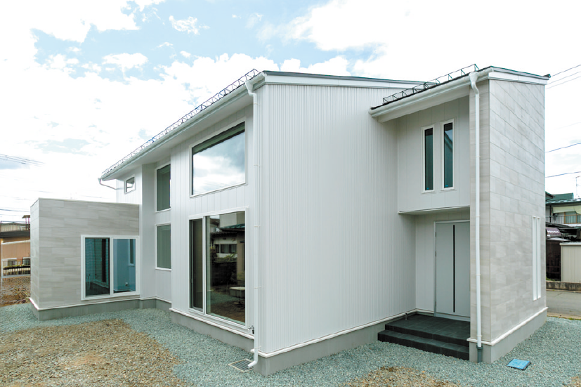 施主様ご夫婦がお気に入りの旅館の雰囲気をベースに、細部までこだわり抜いて仕上げた住まいです。白を基調としたスタイリッシュモダンな外観と、室内に広がる和のしつらえ。その意外性のある対比が印象的です。