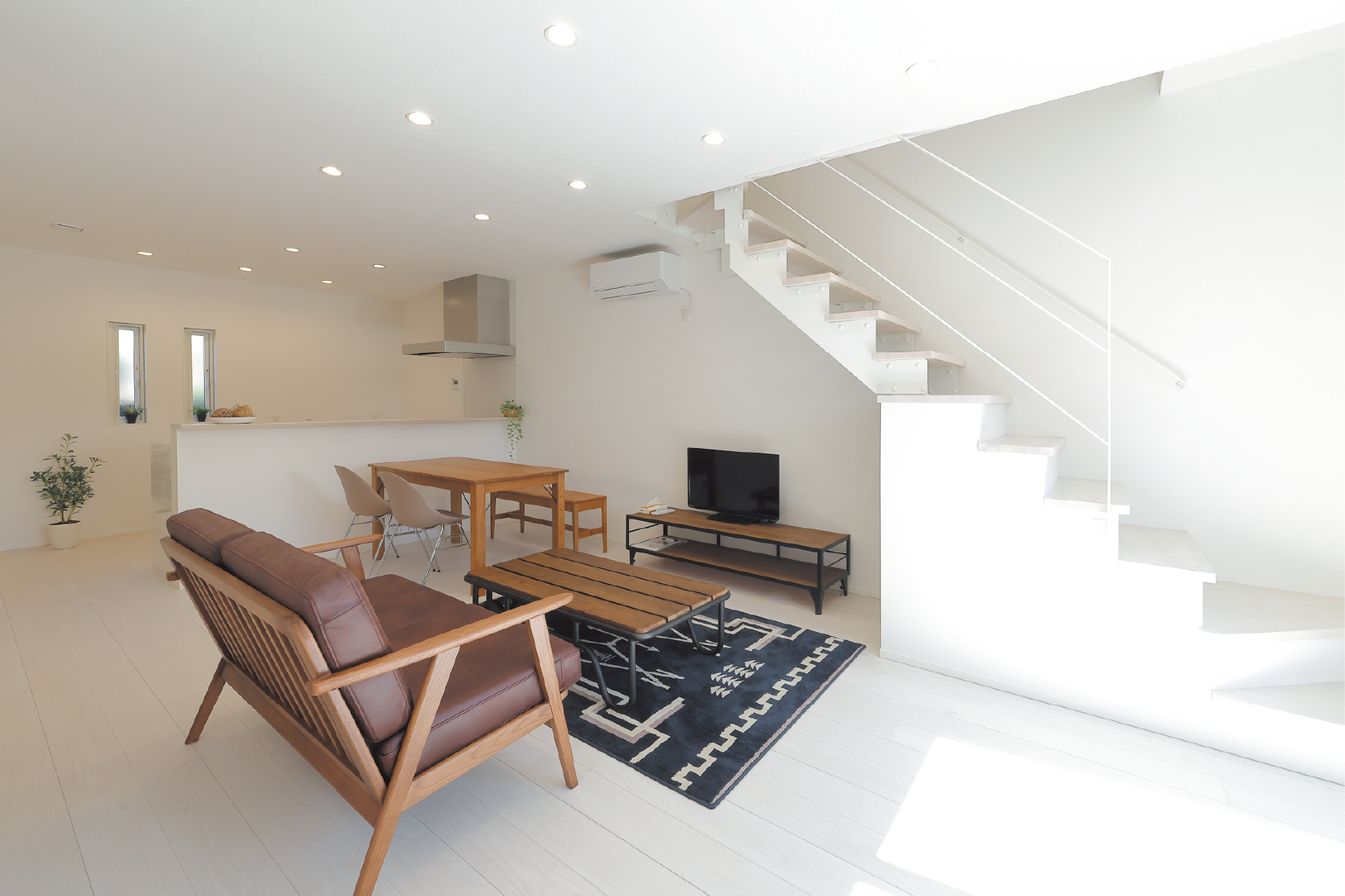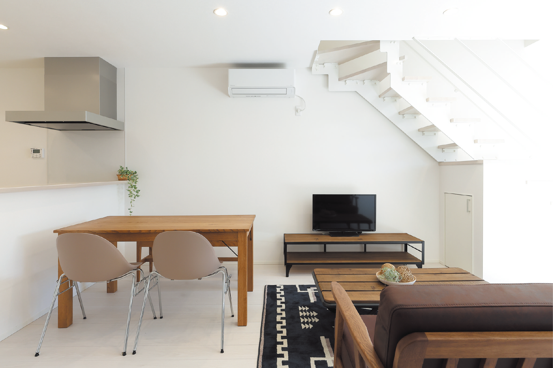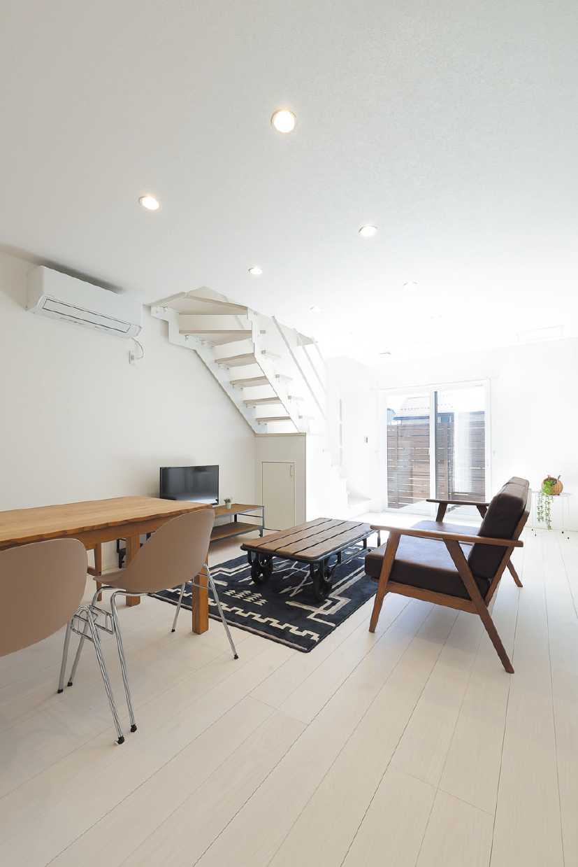 スケルトン階段と団欒スペース