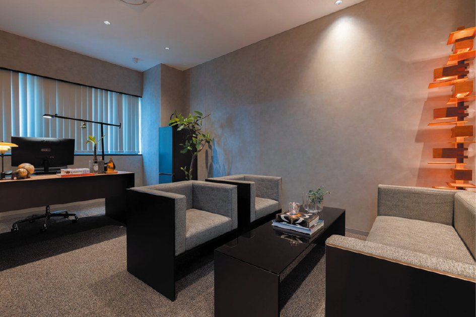 新築マンションのインテリアコーディネート、中古マンションや戸建てのデザインリフォーム、店舗・オフィス・クリニック・教育施設のインテリアデザインに加え、家具やアートなどのインテリアエレメントにも幅広く対応。オフィスや店舗では、ウェルビーイングを高め、働く人のモチベーションや生産性を高める空間デザインを重視しています。