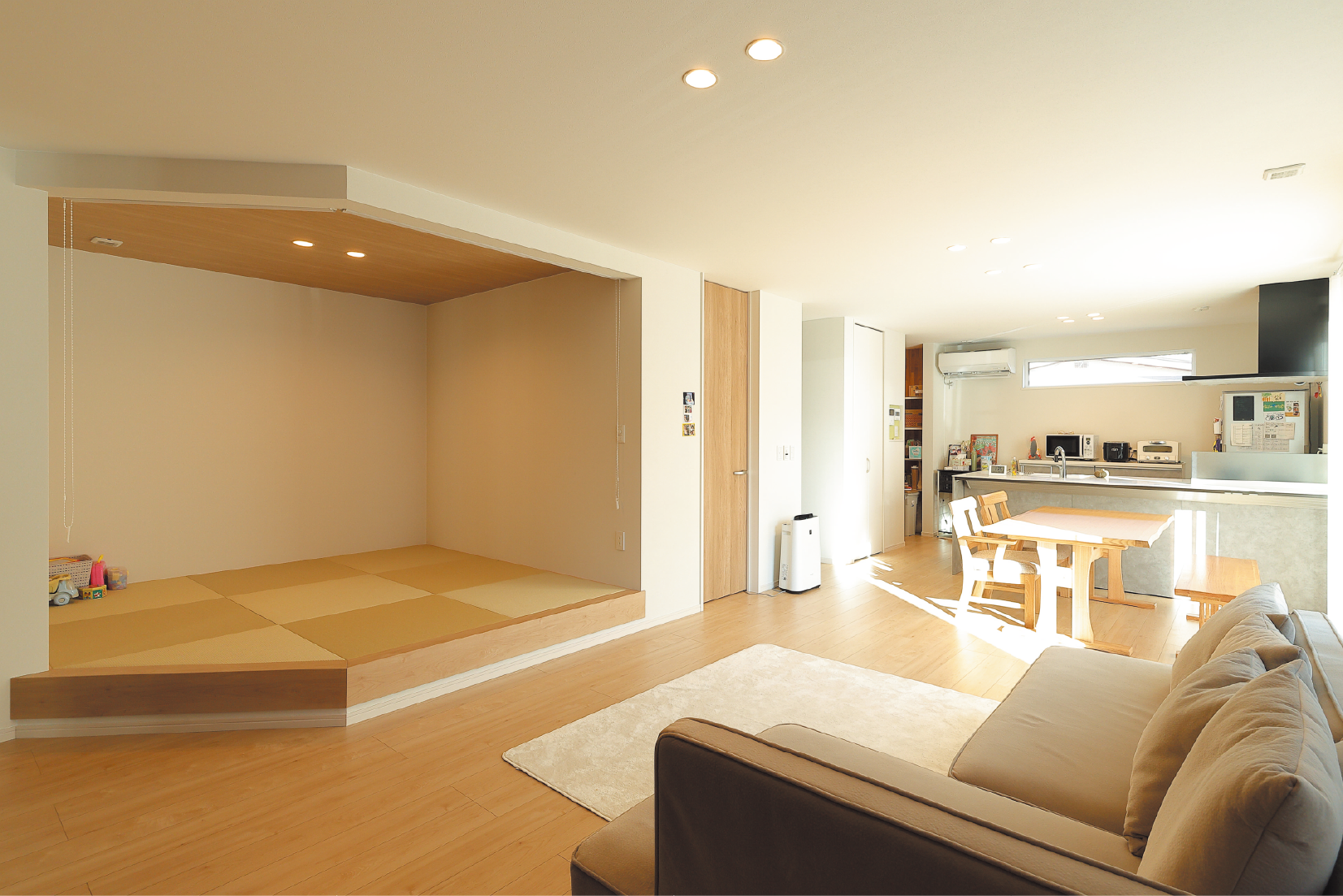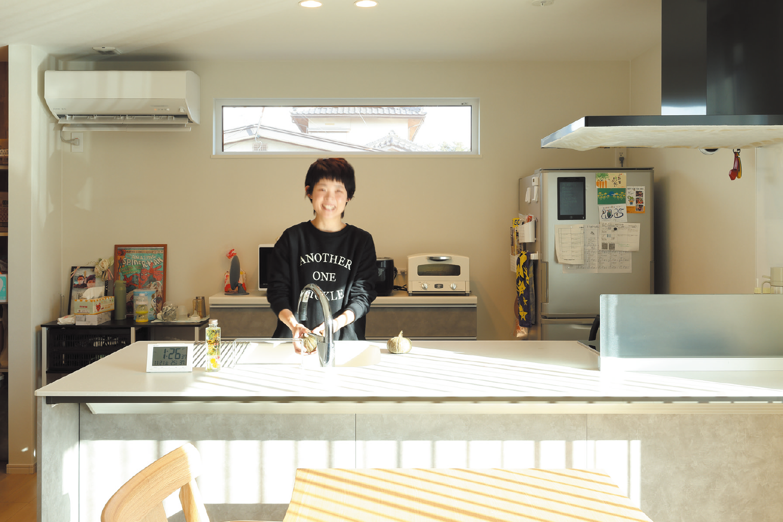 「平屋は階段がないので子育ても安心です。老後も暮らしやすいと思います」と施主様。完成した住まいは、ご家族の伸びやかな暮らしやすさを第一に考えた、温かみのある平屋になりました。
