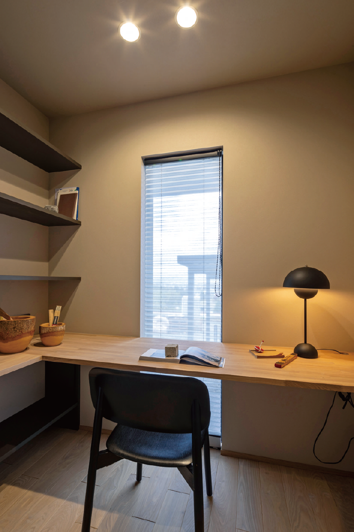 プライベート空間の主寝室と子ども部屋はクローゼットを挟むように配置し、適度な距離感を保つことでプライバシーに配慮。他にもご主人の仕事用書斎やゲスト用の和室などもあり、お施主様のこだわりが詰まった住まいです。ハウズでは家族の暮らしを豊かにする住空間を提案しています。