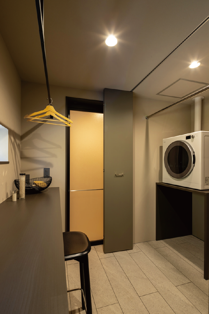 機能的で生活感を隠す収納が徹底されており、キッチン家電収納や冷蔵庫まで収まるパントリー、洗濯機周りをまとめて隠せるランドリースペースなど急な来客時にも扉を閉めて隠すことができます。さらにWIC収納もアウター用・シーズンオフ用・夫婦専用のワードローブを設け、スッキリとした暮らしを叶えます。