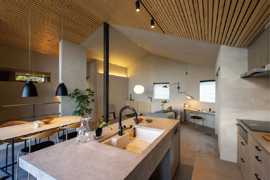 心地よい光が差し込むLDKは広々とした開放感に満ちており、家族団らんの場として、また友人をもてなす場として、眺望が特別な時間を演出します。キッチンは作業スペースを多く確保できるオリジナルの型キッチンを採用し、複数人同時にキッチンを囲むことができるため会話を楽しみながら料理をすることができます。また隣接したバルコニーでコーヒーやお酒を楽しんだり、読書をしたりとリラックスタイムも日々の楽しみに。