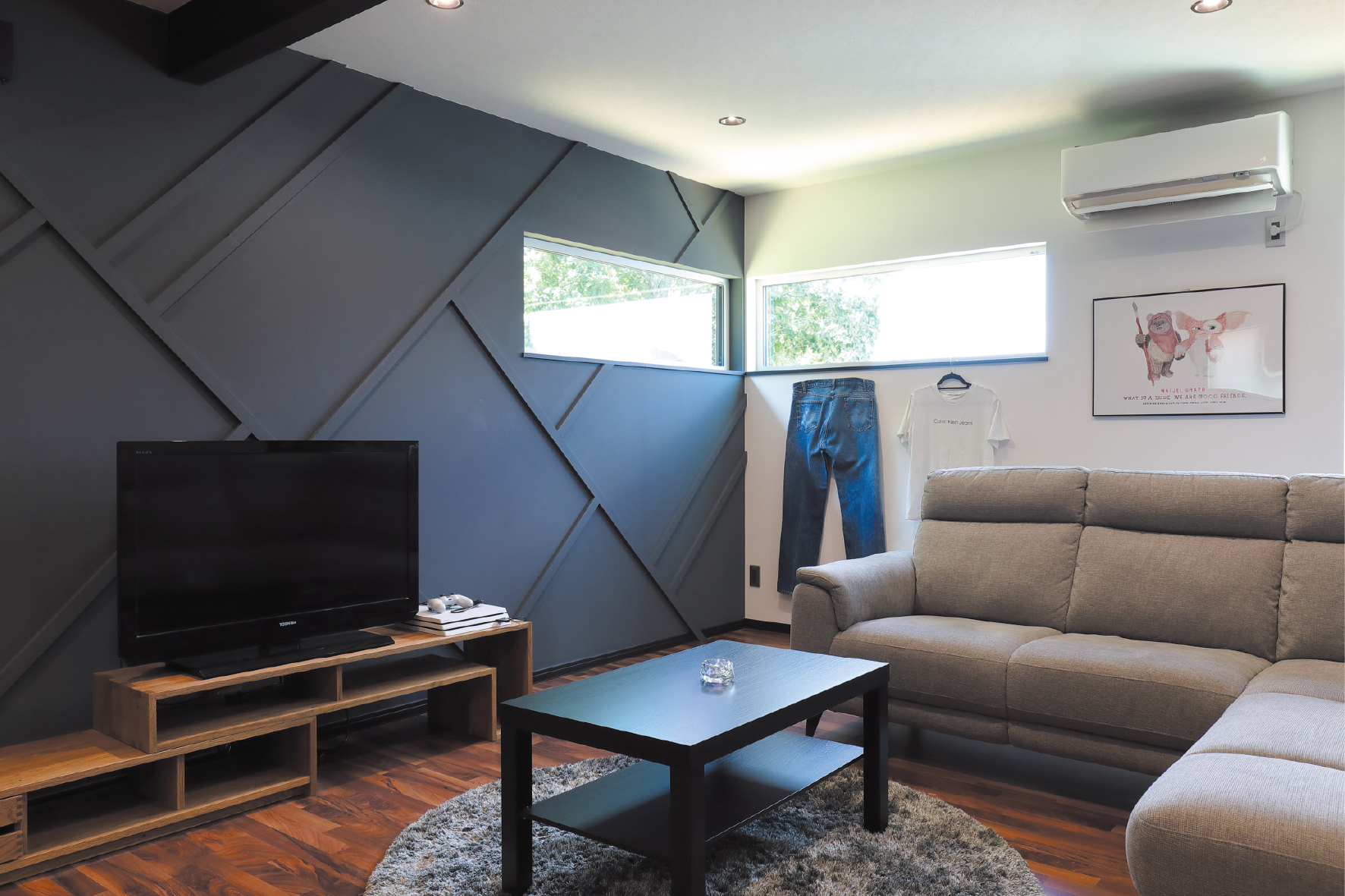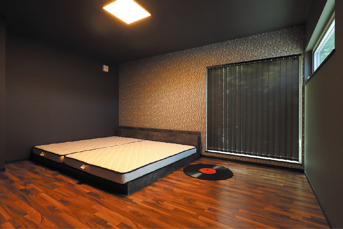 室内はウッド×モノトーンを組み合わせ、同社がセレクトしたインテリアや家具のコーディネートで、上質な空間を演出。熟練の技によるデザインウォールが表情豊かにリビングを彩り、さらに、ダウンライトはBluetoothスピーカー内蔵により手持ちのスマートフォンから音楽を再生できるなど、操作性の良さも備えています。使いやすさに配慮して2つ並べた洗面台、出入り口が2か所あるウォークスルークローゼットが生活動線をより快適にしてくれます。普遍的かつ飽きがこない、ロングライフデザインを追求した住まいに仕上がっています。