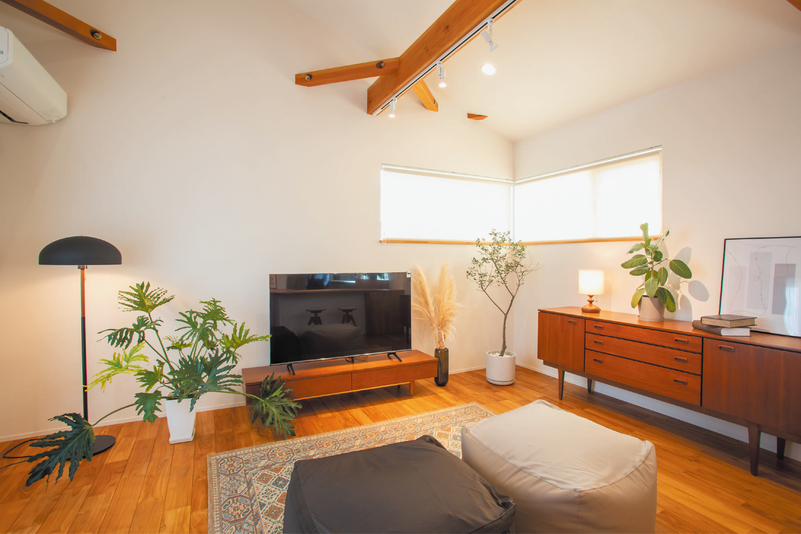 敷地面積41坪の土地に完成したのは、ミッドセンチュリースタイルの建物空間を最大限に活用した2階建て住宅です。